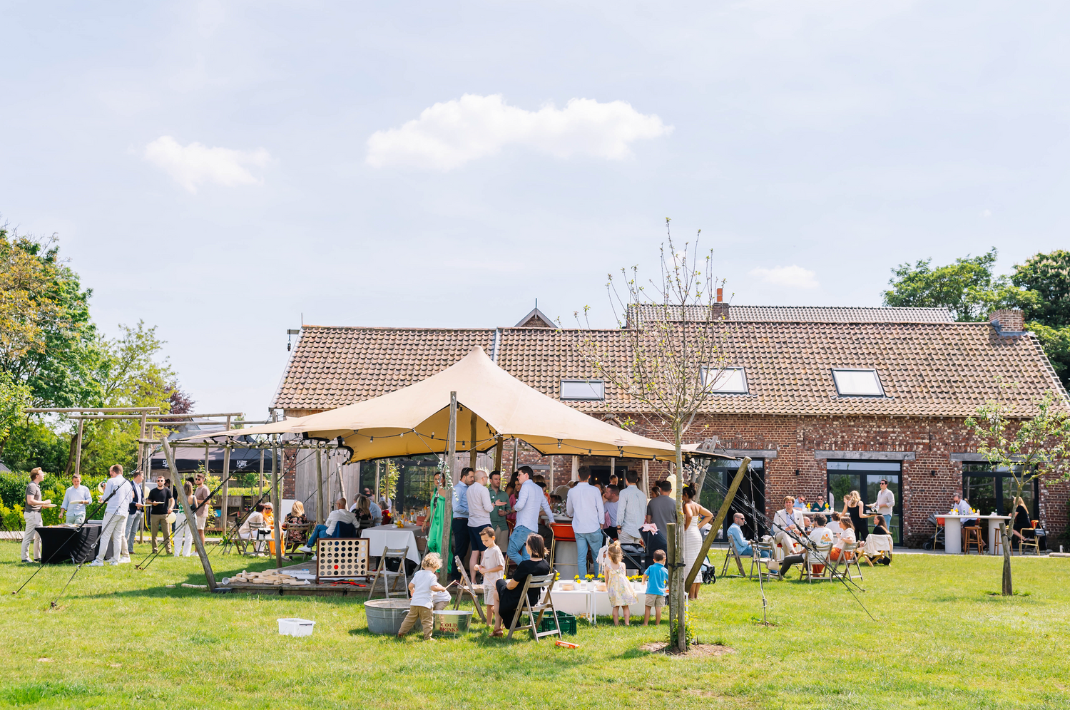 Een authentieke hoeve met plaats tot 350 personen. Ideaal gelegen nabij de autostrade. Een feestlocatie zonder vast einduur.